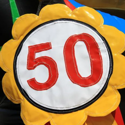 Iemand 50 geworden? Verras hem met een enorm evenbeeld van de Sarah.